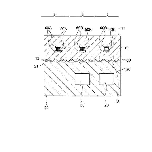 前記厚み方向視にて前記空間部には重ならない位置に配置されて前記接続パッドのうちの1つに接続される第3ビアと、