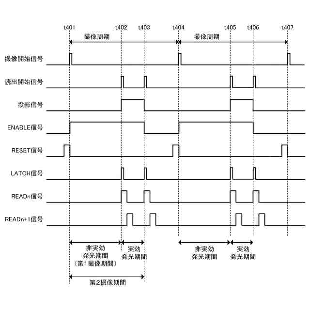 前記第2撮像期間は、前記実効発光期間の開始時に開始し、前記非実効発光期間において終了する、