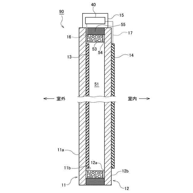 図1に示すように、太陽電池ガラス10は、透光性を有する一対のガラスパネル(第1ガラスパネル11および第2ガラスパネル12)と、太陽電池モジュール13(PVモジュール)と、エレクトロクロミックモジュール(ECモジュール)14と、太陽電池ガラス10の上部に設けられた端子箱15と、を備える。