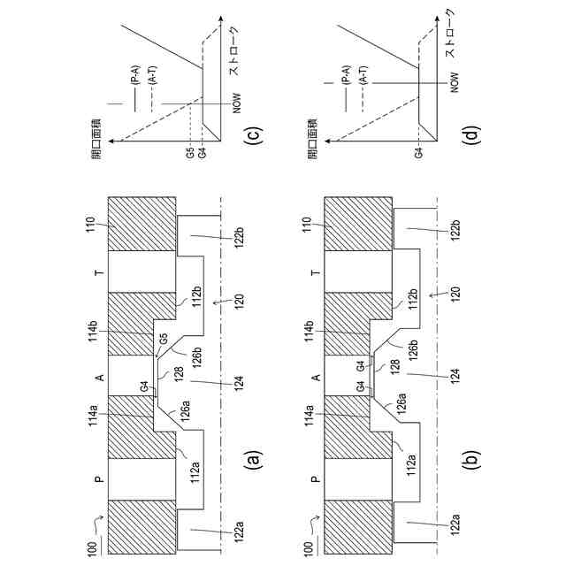 シャフトは、PポートおよびTポートより外側に、作動流体の漏れを防止する一対のスプール部を有し、円柱面と絞り面の間のクリアランスは、スプール部とスリーブの間のクリアランスよりも大きくてもよい。