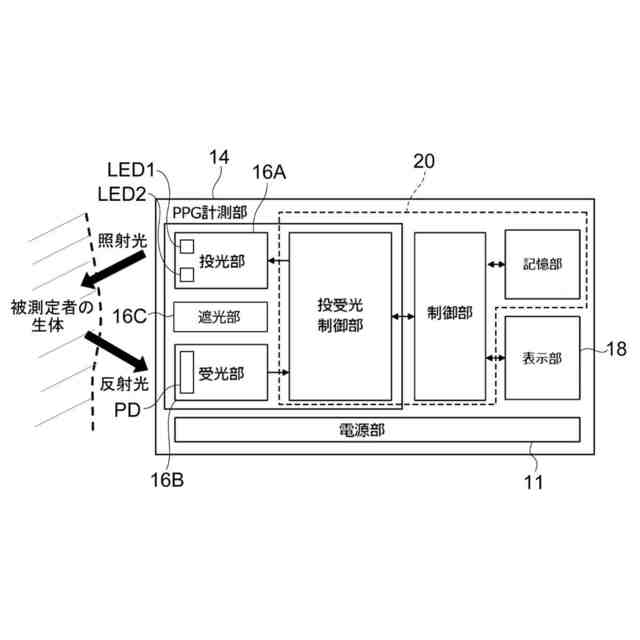 ここで、近年、手首や上腕等の皮膚上に測定機器が装着された状態を継続させつつ、酸素飽和度を医療機器レベルの精度で日常的に測定可能な装置の需要が高まっている。しかし、手首や上腕における測定では、装置によって取得される脈波信号の振幅が、指先等に比べて非常に低くなる。