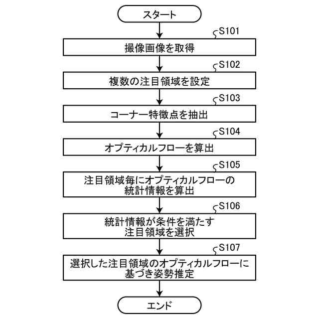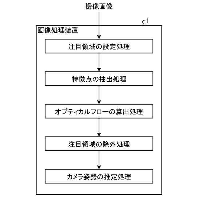 また、特許文献1では、複数の注目領域それぞれについて、オプティカルフローの統計情報を算出し、統計情報が条件に満たない注目領域については、他車両等の不要な物体が含まれているとして、カメラ姿勢の推定処理から除外する技術が開示されている。