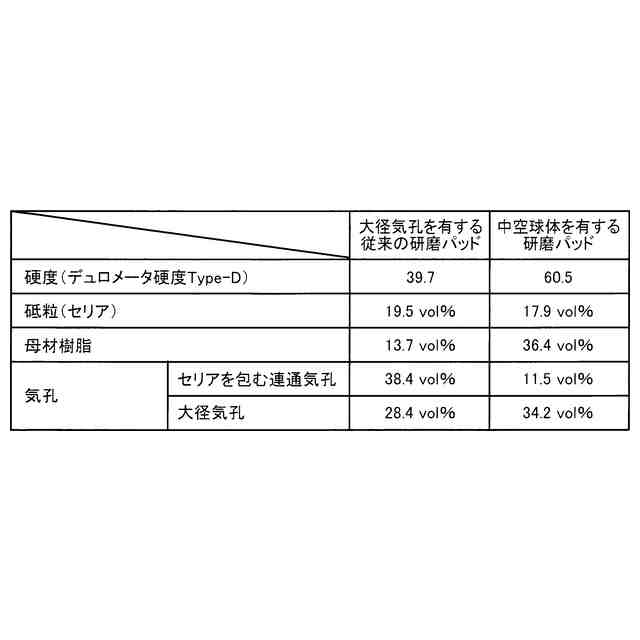 すなわち、第1発明の要旨とするところは、ワークの一面をCMP法を用いて研磨するために用いられる砥粒内包型高強度研磨パッドであって、樹脂製の中空球体と、前記中空球体を結合する母材樹脂と、前記中空球体間の連通空間に充填された研磨砥粒と、を備えることにある。