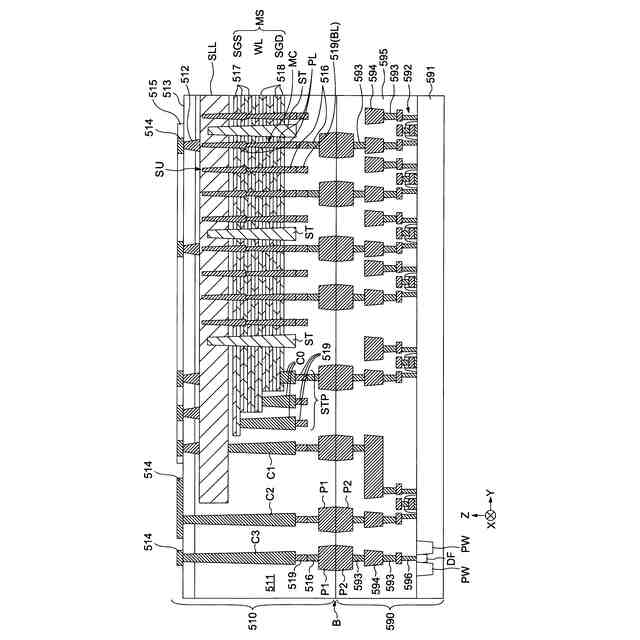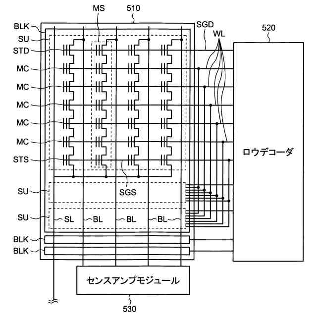 図1は、実施形態にかかる半導体装置10のブロック図である。図1に示すように、半導体装置10は、入出力回路310、ロジック制御回路320、ステータスレジスタ330、アドレスレジスタ340、コマンドレジスタ350、シーケンサ360、レディ/ビジー回路370、電圧発生回路380、メモリセルアレイ510、ロウデコーダ520、センスアンプモジュール530、データレジスタ540、及びカラムデコーダ550を備える。