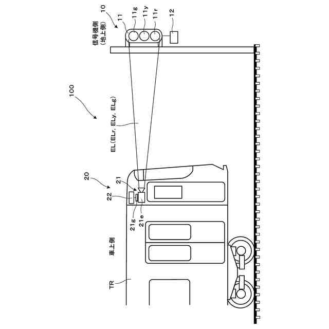 本発明の具体的な側面では、信号処理部は、点滅周期及びデューティー比から、発信側における灯色情報及び信号機IDを送信情報として抽出する。この場合、必要な情報を迅速に取得することができる。