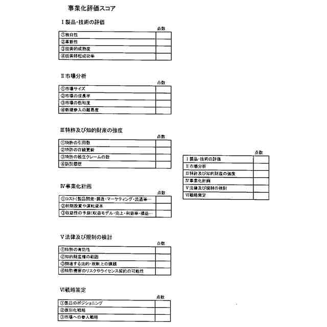 図2は本発明で使用される事業化評価スコアの基本構成を示している。