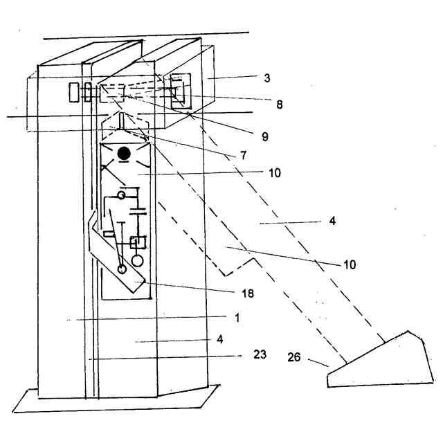 14,落下力を同時に半回転軸テコ板に落とし左右のテコ板より2系統のスイッチ電磁スイッチオンとテコ鍵を解除
