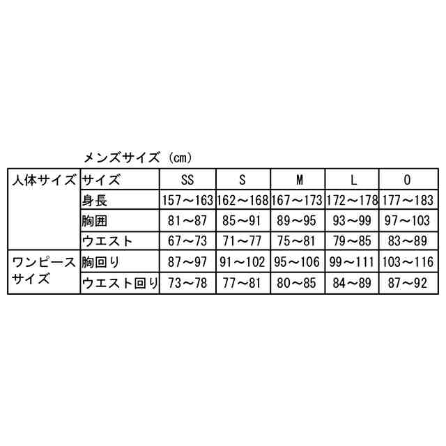 想定される利用者の体格に対して定められたサイズの男性用ワンピースであって、