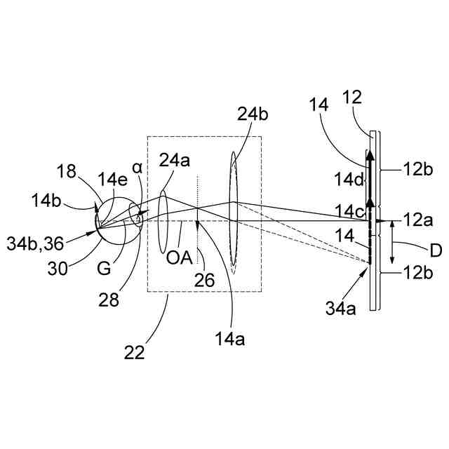 本明細書及び図面に開示の実施形態が解決しようとする課題の一つは、ユーザの眼球の視線が変化しても当該ユーザの眼球内に投影される画像の位置を維持することである。ただし、本明細書及び図面に開示の実施形態により解決しようとする課題は上記課題に限られない。後述する実施形態に示す各構成による各効果に対応する課題を他の課題として位置づけることもできる。