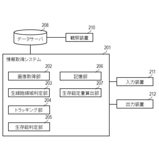 【課題】経時的に撮影した細胞画像中の各細胞のトラッキング情報と生細胞領域判定結果をもとに、細胞の生存能に関する情報を取得できる。