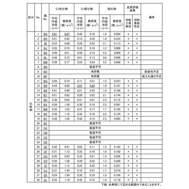 以上の非常に大きな炭化物サイズしか考慮されておらず、切削工具寿命と切削表面性状を十分に満足することができない。