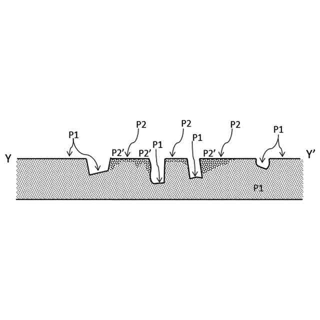2.正面視において、上記凹部は、ベース色領域P1を有することを特徴とする1.に記載の面材。