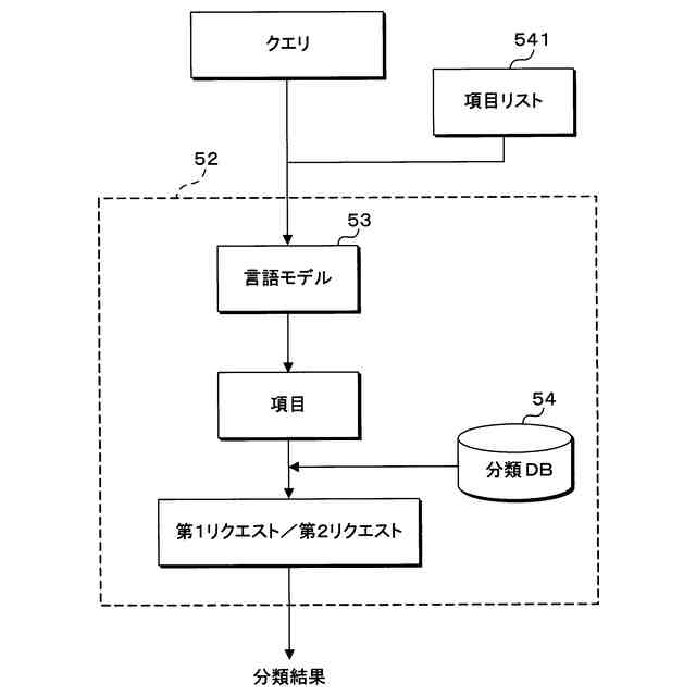 クエリが医療施設情報に関する第1リクエストであるか、または、医療施設での医療行為に関する第2リクエストであるかを分類する分類モデルに、取得したクエリを入力して、分類結果を取得し、