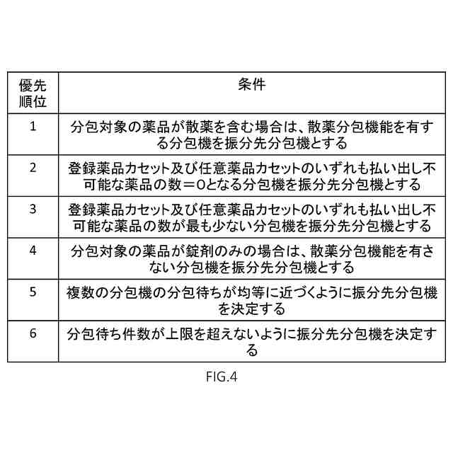 図4は、振分先分包機を決定するための条件の一例を示す図である。