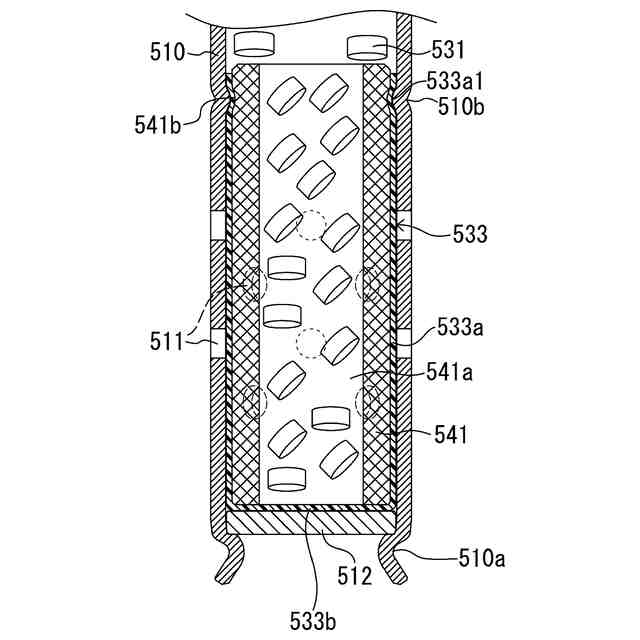 燃焼することによってガスを発生させるガス発生剤が装填され、前記ガスが通過する筒状のフィルタを内部に含み、前記フィルタに対応する位置に前記ガスを噴出するガス噴出口が形成されている長尺筒状のハウジングと、