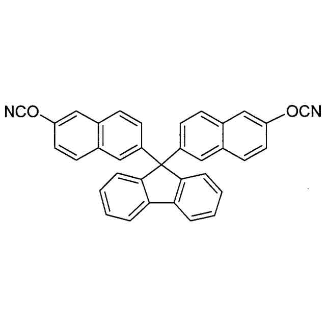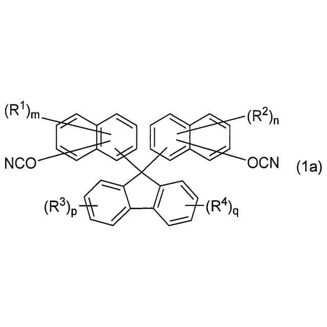 として、フルオレン-9,9-ジイル基が例示されている。この文献の実施例には、ジベンゾキサンテンジシアナート、ビス(4,4’-ジシアナトビフェニル-3-イル)ビフェニルメタンなどが使用されている。