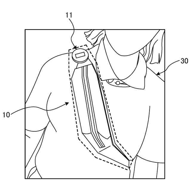 前記衣服または着用具が備える収納部に収納され、かつ、前記衣服または着用具を着用する前記運転者に対し前記運転者の身体から離れた側である外側に配置される、