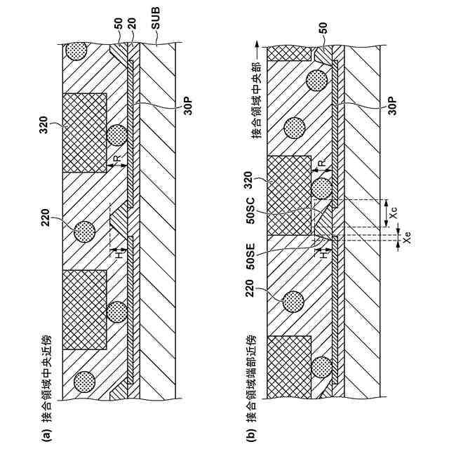 一実施形態における有機EL表示装置の接合領域の断面模式図。