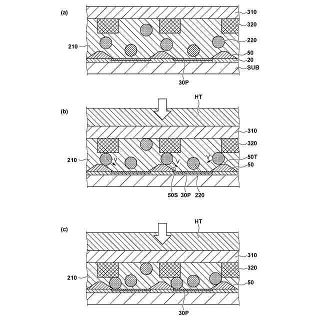 一実施形態の半導体装置におけるACF圧着工程における接合領域の断面模式図。