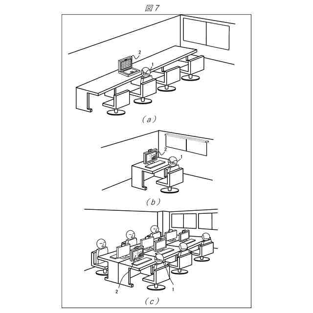 場所に関する情報として場所の位置情報や周辺環境に関する情報を基準とする代替表示制御例を示す図であり、(a)は、非プライベート・オフィス空間、(b)は自部屋、(c)はオフィスでの使用例を示す。