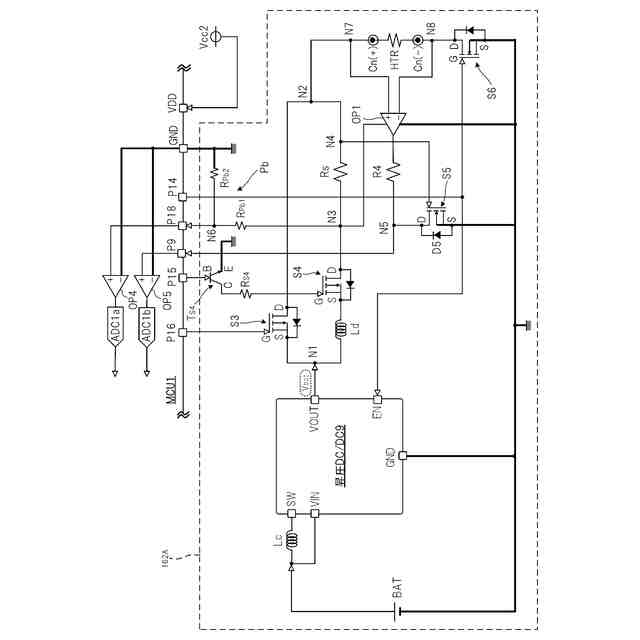 図10に示す電気回路のうち、ヒータの加熱と温度検出に用いられる主要な電子部品を抜き出して示した要部回路図である。