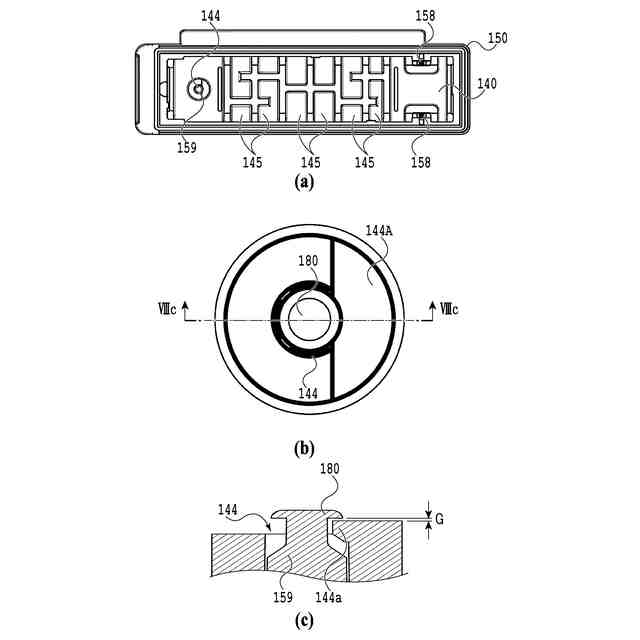 第1の実施形態に係る記録装置のカートリッジの蓋部材と隔壁部材が一体化した状態の下面図、部分拡大図および断面図である。