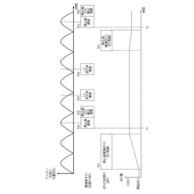 特許文献1には、静止画撮像時における電荷蓄積タイミングをフリッカーの光量変化に応じて調整することで縞のない静止画像を取得し、その静止画像を用いて測光値を算出することで正しい測光値を得る方法が開始されている。また同特許文献には、ライブビュー画像を撮像する際の電荷蓄積時間をフリッカーの光量変化周期の整数倍に設定することで、フリッカーの影響を低減してライブビュー画像から正しい測光値を得る方法も開示されている。そして同特許文献には、連続撮像中は常に静止画像から測光値を得ることが開示されている。