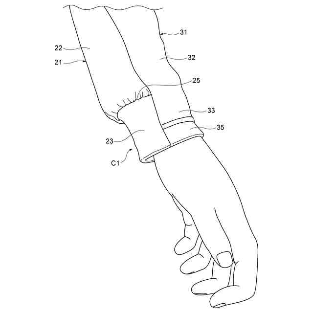 内側腕部、外側腕部及び外側袖口部は、一体の第1の生地によって構成され、内側袖口部は、第1の生地とは別体の第2の生地によって構成され、内側袖口部は、内側腕部に縫合されていてもよい。内側袖口部を別体の生地によって構成することで、内側腕部と内側袖口部との縫合部に絞り部を容易に形成できる。その結果、製造時の寸法のばらつきを抑制することができる。