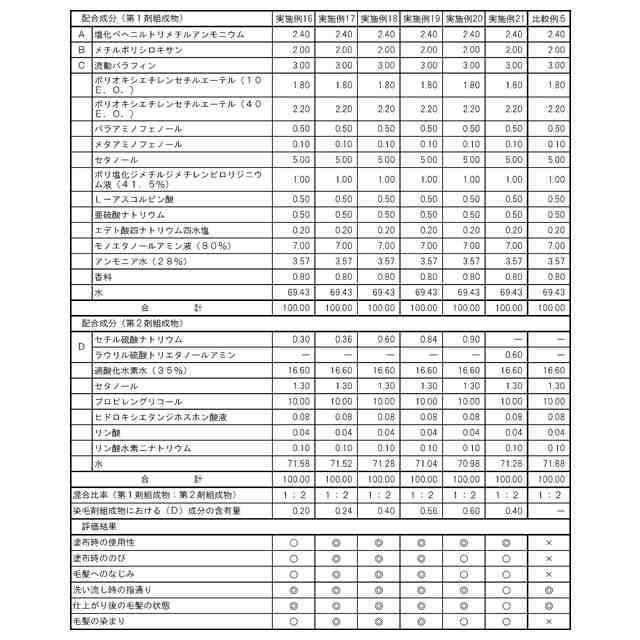しかしながら、手を用いて塗布する際に垂れ落ちない粘度を付与したり、良質な泡を形成したりするには、染毛剤組成物に多量の界面活性剤を配合する必要があった。界面活性剤を多量に配合することで、毛髪への脱脂力が強くなりすぎてしまい、染毛剤組成物の洗い流し時の指通りが悪くなり、仕上がり後の毛髪にパサつきなどの不満が残るという課題があった。そのため、満足のいく使用性や高い染毛力を保持しつつ、洗い流し時の指通りや仕上がり後の毛髪の状態を良好に保つことは非常に困難であり、いまだ改善の余地があった。