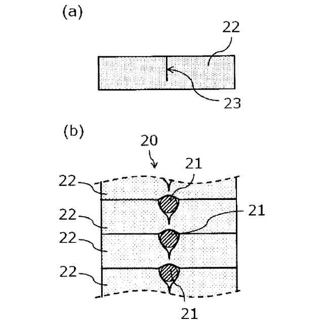 このような粘着体は、線状であるため、狭い場所等にも適用させやすい。また、液状の接着剤とは異なり、液だれやはみ出し等のおそれもない。