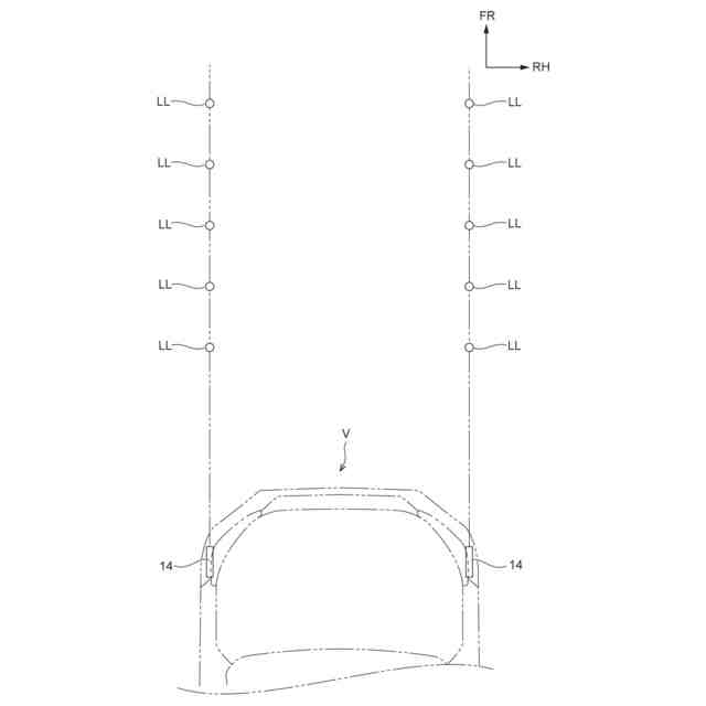 以下、図面を用いて、本実施の形態に係る運転支援装置10が適用された車両(自動車)Vについて説明する。なお、図1に示される矢印FRは車両Vの車両前側を示し、矢印RHは、車両上側から見たときの車両右側(車幅方向一方側)を示している。