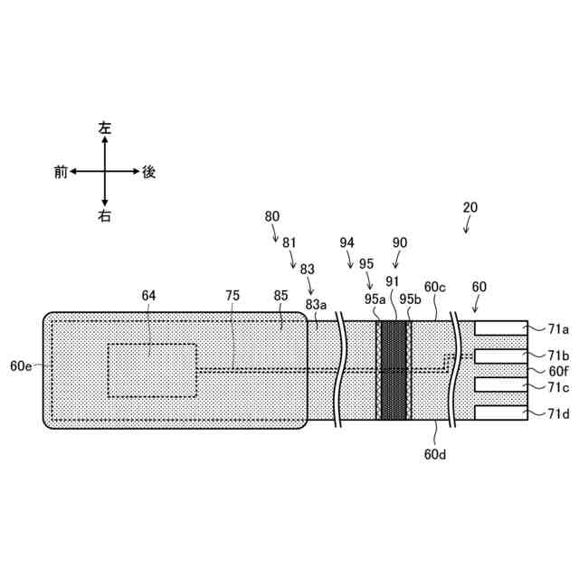前記側面の前記後端側に配設され、外部と電気的に導通するためのコネクタ電極と、
