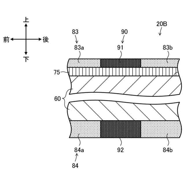 前記複数の境界部のうちの少なくとも1つは、前記2層のうち気孔率が低い側の層の厚みが薄くなりながら前記側面に接近するように延在している、