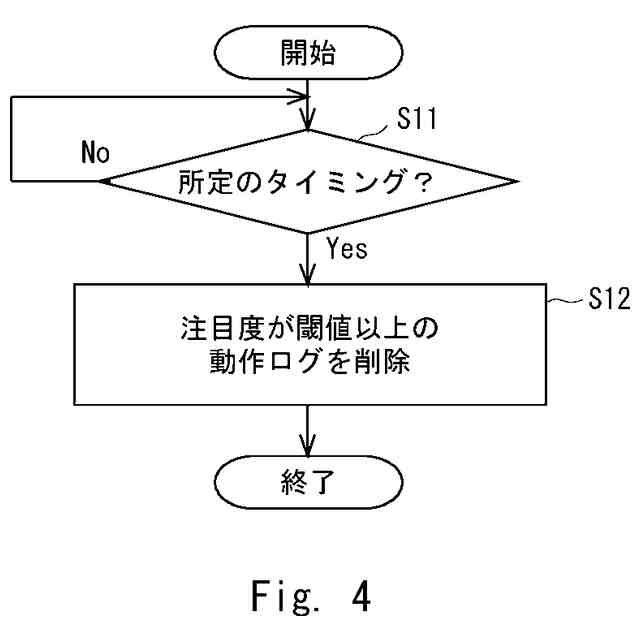 前記記録制御部は、所定のタイミングになると、前記注目度情報が示す注目度が第1閾値以上の前記動作ログを、前記記録部から削除する。