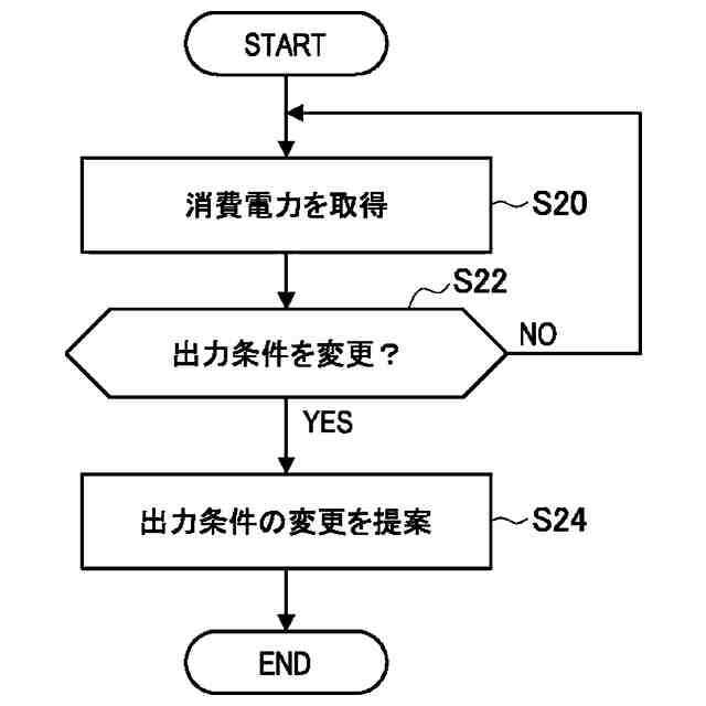 取得した前記消費電力に基づいて、前記ユーザにより設定された前記出力条件を変更することを前記ユーザに提案する、