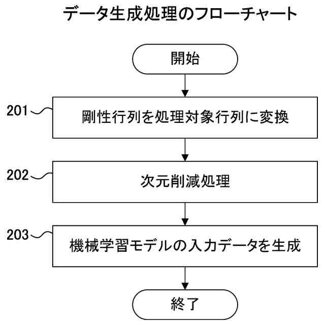 【解決手段】コンピュータは、解析対象の剛性行列を、剛性行列の条件数よりも小さな条件数を有する処理対象行列に変換する。コンピュータは、処理対象行列を用いて次元削減処理を行い、次元削減処理の結果に基づいて、解析対象に関する物理量を推論する機械学習モデルの入力データを生成する。