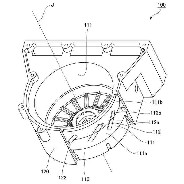 なお、図1に示す中心軸Jの延びる方向を軸方向と呼ぶ。軸方向において、図1の右下側を「一方側」と呼び、図1の左上側を「他方側」と呼ぶ。なお、一方側及び他方側とは、単に説明のために用いられる名称であって、実際の位置関係及び方向を限定しない。また、特に断りのない限り、中心軸Jを中心とする径方向を単に「径方向」と呼び、中心軸Jを中心とする周方向、すなわち、中心軸Jの軸周りを単に「周方向」と呼ぶ。径方向において中心軸Jに近づく側を「径方向内側」と呼び、中心軸Jから遠ざかる側を「径方向外側」と呼ぶ。周方向において、軸方向他方側から見たときの時計回りの側を「周方向一方側」と呼び、反時計回りの側を「周方向他方側」と呼ぶ。