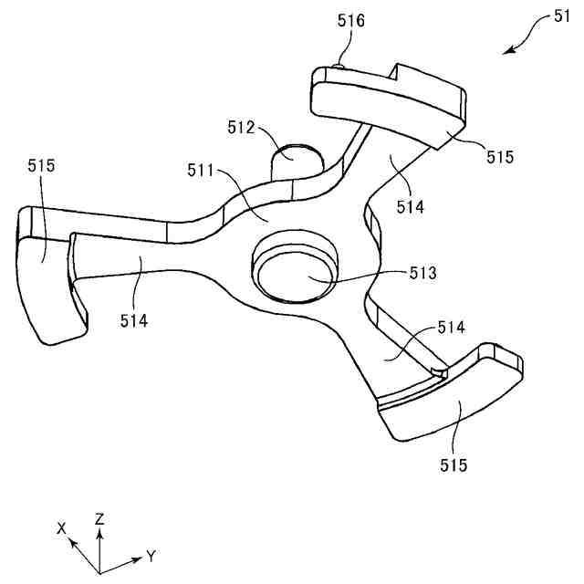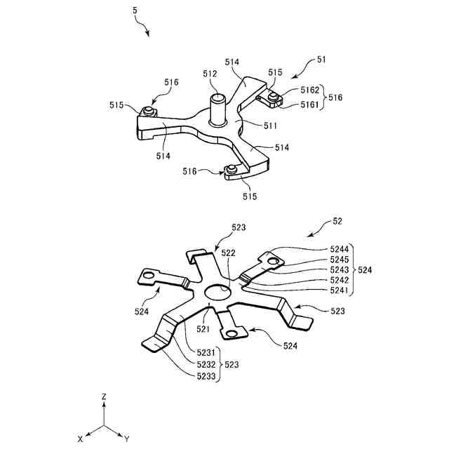 このような傾倒操作および押下操作を印加した際のクリック感の方向性依存性という問題に対し、特許文献2は、図2に示されている多方向入力装置600を開示している。多方向入力装置600は、基板上に固定されたハウジング610と、第1の回動軸(X方向)回りに回動可能に、ハウジング610に保持された第1の回動部材620と、第1の回動軸と直交する第2の回動軸(Y方向)回りに回動可能に、ハウジング610に保持された第2の回動部材630と、ユーザーからの傾倒操作に応じて傾倒し、さらに、ユーザーからの押下操作に応じて下方に変位可能な操作軸640と、ハウジング610内において操作軸640を中立状態で弾性的に保持する保持機構650と、操作軸640の真下に位置するよう基板上に設けられたプッシュスイッチ700と、を備えている。保持機構650は、コイルバネ660と、コイルバネ660上に積置され、操作軸640を下方から支持する昇降スライダー670と、を備えている。