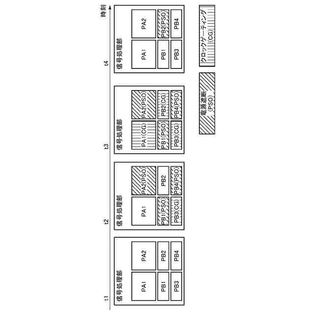 第2実施形態に係る半導体装置における処理回路の状態の時間変化を示す模式図である。