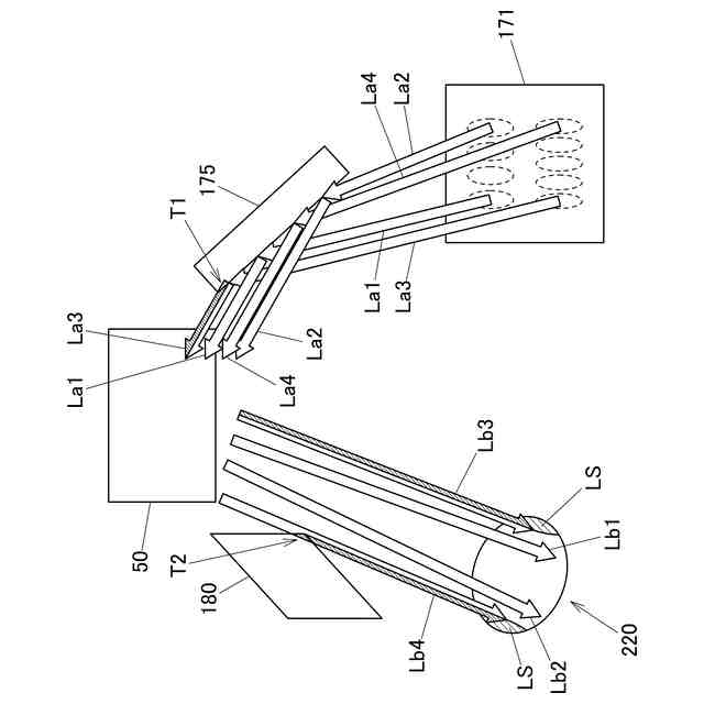光出射装置から出射された光は、光軸の向きを変更する反射ミラーを介して表示素子に照射される。また、表示素子により生成された画像光が投影光学系に入射されるまでの光路の近傍には、迷光を遮蔽する遮蔽板が設けられることがある。すると、投影光学系には、反射ミラーや遮蔽板等の部材の影響により光を取り込むことができない無効領域が生じてしまうことがある。よって、複数の半導体発光素子が設けられる光出射装置からの出射光は、一部の半導体発光素子から出射された光が投影光学系の無効領域に照射されてしまうことがある。そうすると、光出射装置からの出射光の利用効率が低減することとなってしまう。