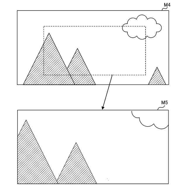 図6は、仮想背景の画像M4の一例と、仮想背景の画像M4から切り出された仮想背景の画像M5の一例と、を示す図である。