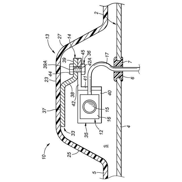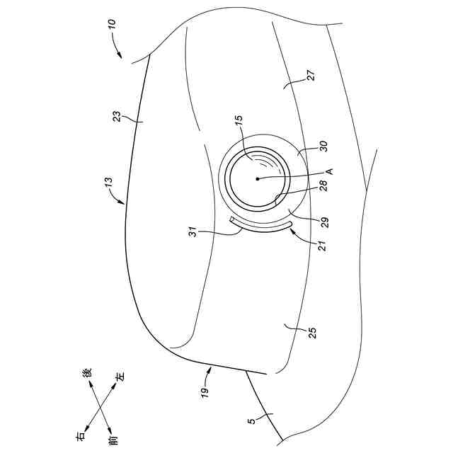 この態様によれば、走行風により周壁部の前壁部にて渦が発生しても、この渦は、周壁部の後壁部に当たり難くなる。したがって、走行風に起因する風切り音の発生を抑制することができる。