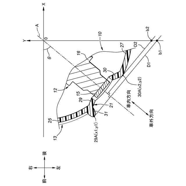 上記の態様において、前記前壁部には、前記車外側に向かって突出する凸部(31、101)が形成されてよい。