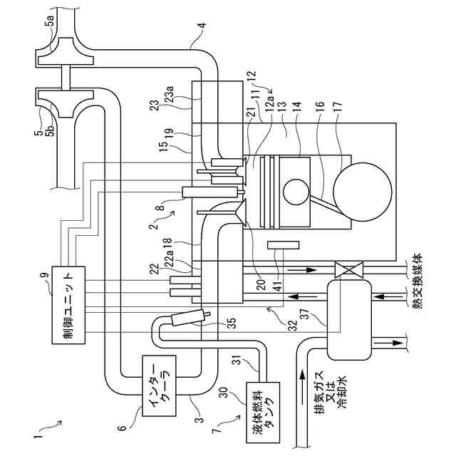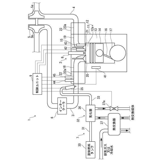 従来、エンジン装置には、アンモニアやメタノール等の温室効果ガス排出量の少ない低GHG燃料をエンジンに供給して駆動するものがある。エンジン装置は、液体状態の低GHG燃料を貯蔵していて、エンジンに通じる吸気経路やエンジンの燃焼室に対して低GHG燃料を噴射することで、燃焼室に低GHG燃料を供給する。