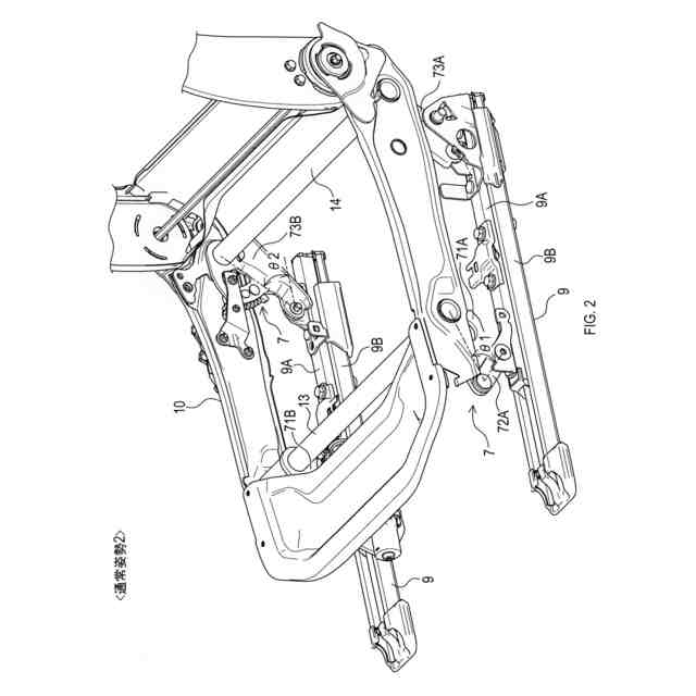 なお、後端側連結部(9C)の回転中心軸線を第1軸線(Ls1)とし、ベース部材(9A)と第2前側リンク(72A、72B)との連結部の回転中心軸線を第2軸線(Ls2)とし、第1前側リンク(71A、71B)と第2前側リンク(72A、72B)との連結部の回転中心軸線を第3軸線(Ls3)とし、連結体(13)の回転中心軸線を第4軸線(Ls4)とし、シート幅方向と直交する仮想平面に投影された第1軸線(Ls1)を第1中心点(O1)とし、仮想平面に投影された第2軸線(Ls2)を第2中心点(O2)とし、仮想平面に投影された第3軸線(Ls3)を第3中心点(O3)とし、仮想平面に投影された第4軸線(Ls4)を第4中心点(O4)とし、第1中心点(O1)と第2中心点(O2)との距離を前後締結距離(L3)とし、第1中心点(O1)から第2中心点(O2)及び第4中心点(O4)を通る仮想線までの距離であって、シートクッション(3)の姿勢変化によって最小となるときの距離を第1距離(L1)とし、第1中心点(O1)から第2中心点(O2)及び第3中心点(O3)を通る仮想線までの距離を第2距離(L2)とする。