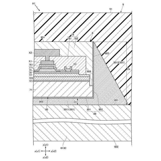 【解決手段】 半導体装置A1は、アイランドリード6と、搭載された半導体素子8と、接合材901と、封止樹脂9とを備える。アイランドリード6は、第1方向zの第1側z1を向く主面601を有する。半導体素子8は、支持層71、複数の機能層73,74,75および絶縁層78を含む素子本体80と金属層89と、を有する。素子本体80は、素子主面801、素子裏面802および1以上の素子側面803を有する。素子側面803は、支持層71および絶縁層78によって構成された部分を含む。金属層89は、底部891と、1以上の側部892と、を含む。接合材901は、底部891および主面601の間に介在する第1部9011と、側部892および主面601の間に介在する第2部9012と、を含む。