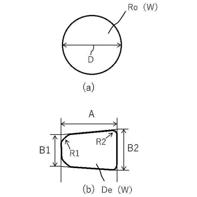 図2は、本発明の実施形態に係る熱処理鋼線の製造装置で圧延加工される前後の素材鋼線の断面形状の一例を示す概念図であり、(a)は圧延加工前、(b)は圧延加工後の圧延加工された部分の断面形状の一例を示す概念図である。