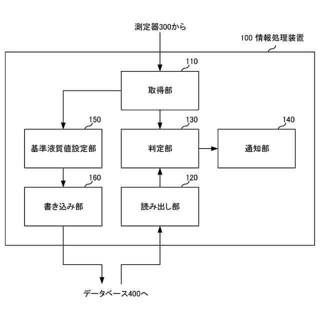 データベースから基準となる基準液質値を読み出す読み出し部と、