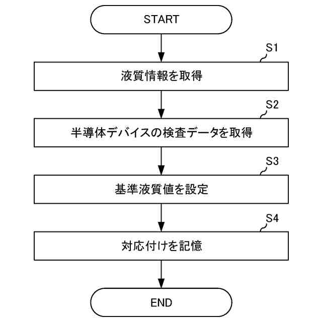 前記取得した液質値と、前記データベースから読み出した基準液質値とに基づいて、前記対象物の洗浄の工程を含む製造工程で製造された半記半導体デバイスが良品であるか否かを判定する処理と、