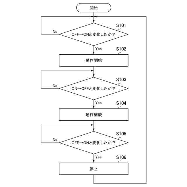 前記制御部は、前記電装品を動作させていない場合に、前記スイッチが非導通状態から導通状態に変化したことに応じて前記電装品の動作を開始させ、さらに前記スイッチが導通状態から非導通状態に変化しても前記電装品の動作を継続させ、